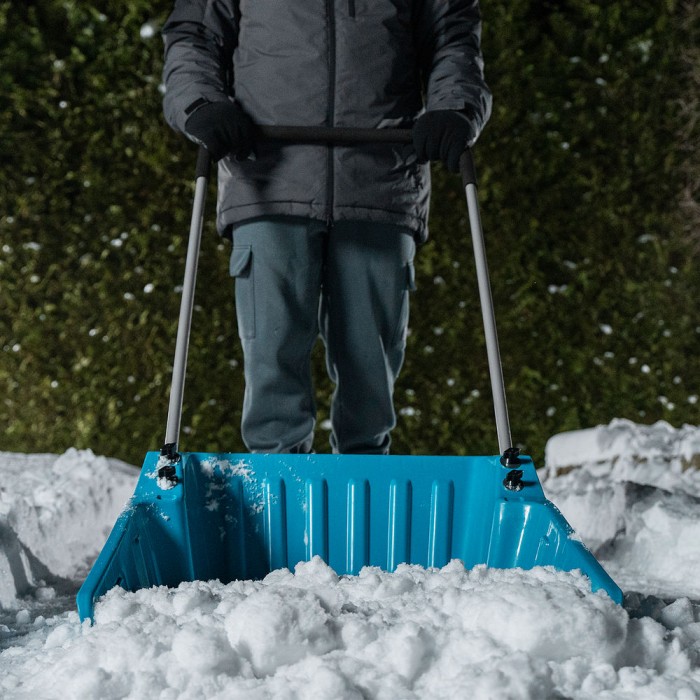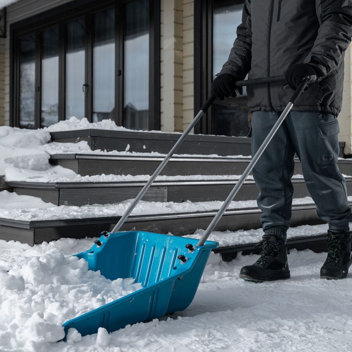 Скрепер-волокуша для уборки снега, полипропилен, колеса, 595х715х1445мм, рукоятка с ПВХ, LUXE Palisad (61694)