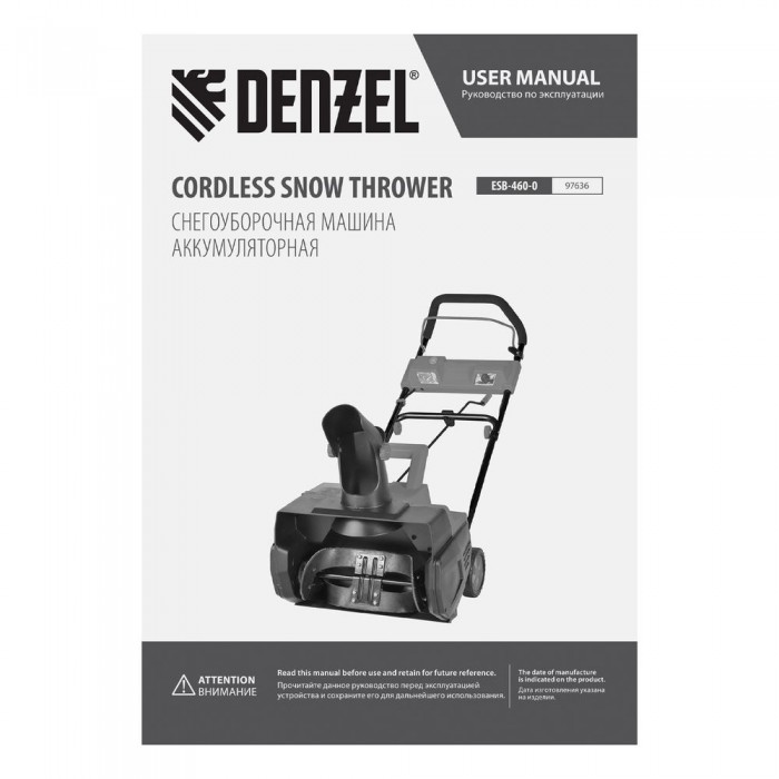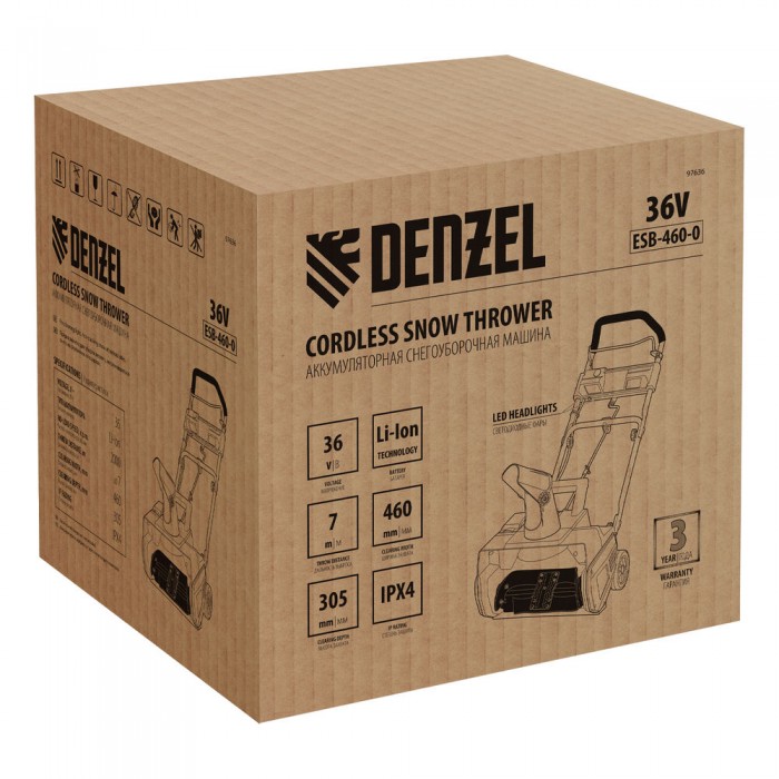 Снегоуборочная машина аккумуляторная, ESB-460-0, Li-Ion, 36В Denzel (97636)