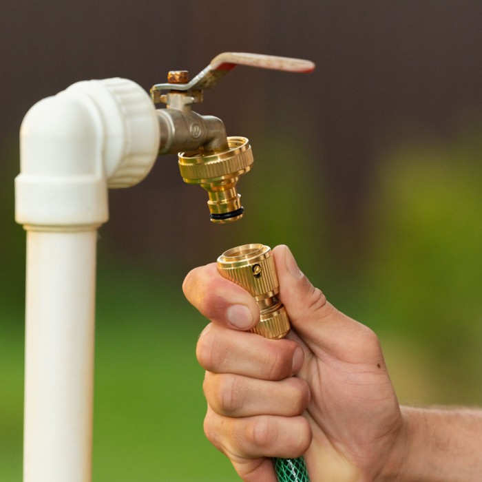 Соединитель латунный, быстросъемный для шланга 1/2, аквастоп Palisad (66240)