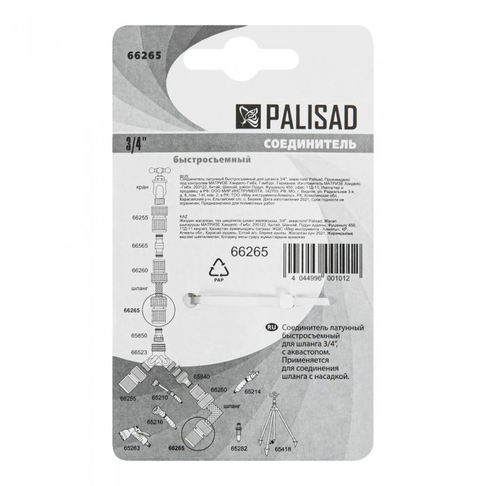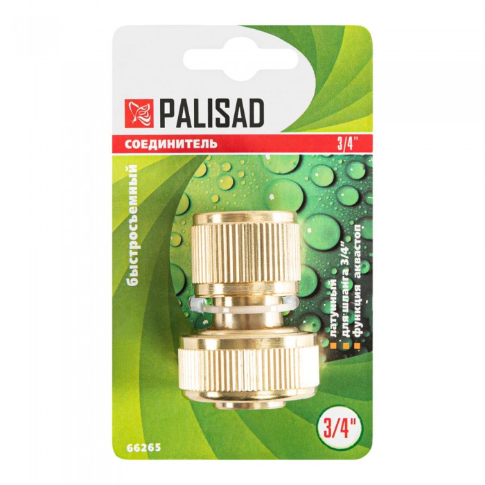 Соединитель латунный, быстросъемный для шланга 3/4, аквастоп Palisad (66265)