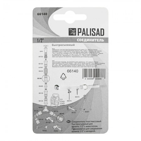 Соединитель пластмассовый, быстросъемный для шланга 1/2, аквастоп Palisad (66140)
