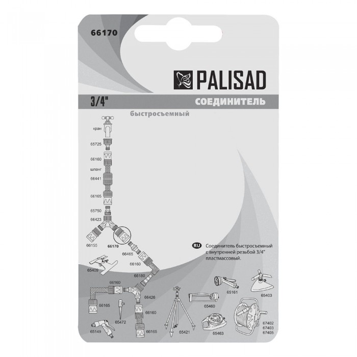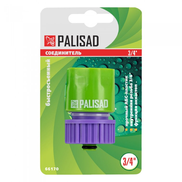 Соединитель пластмассовый, быстросъемный, внутренняя резьба 3/4, аквастоп Palisad (66170)