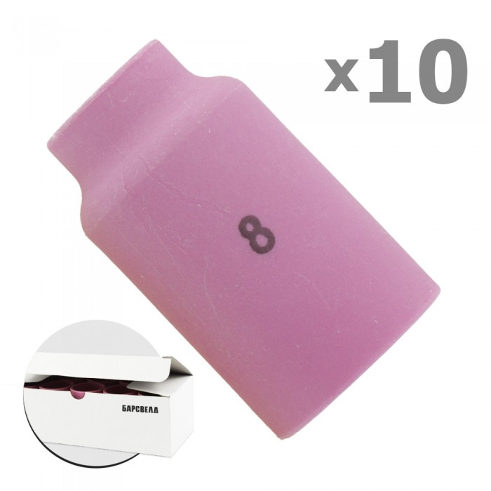Керамическое сопло БАРСВЕЛД №8 ф 12,5 мм используется в сварочных горелках при ручной аргонодуговой сварке методом TIG. Керамика высокого качества гарантирует долгий срок службы сопла, несмотря на постоянное взаимодействие с раскаленным металлом. Подходит под стандартную линзу для горелок типа SR17/18/26.