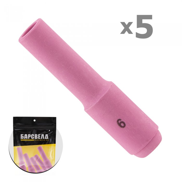 Керамическое сопло БАРСВЕЛД №6L ф 9,5 мм, L=76 мм используется в сварочных горелках при ручной аргонодуговой сварке методом TIG. Керамика высокого качества гарантирует долгий срок службы сопла, несмотря на постоянное взаимодействие с раскаленным металлом. Подходит под стандартную линзу для горелок типа SR17/18/26.