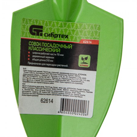 Совок посадочный широкий, 70 х 310 мм, стальной, деревянная рукоятка, Агроном, Сибртех (62614)