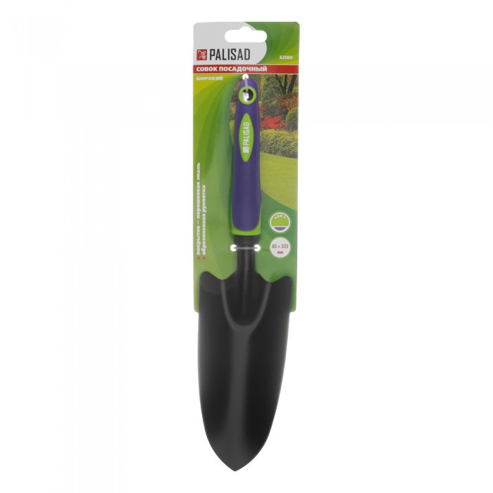Совок посадочный широкий, 85х335 мм, стальной, обрезиненная эргономичная рукоятка, LSR1, Palisad (62060)