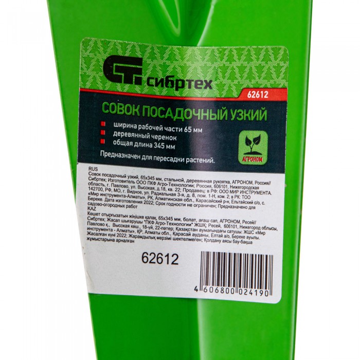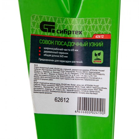Совок посадочный узкий, 65 х 345 мм, стальной, деревянная рукоятка, Агроном, Сибртех (62612)
