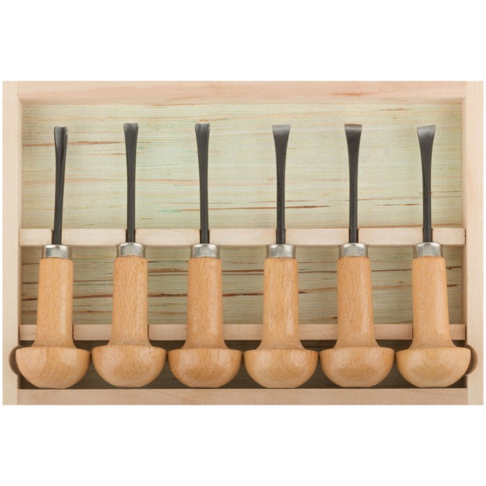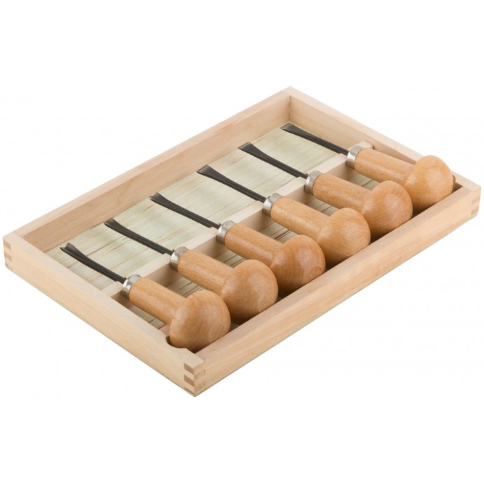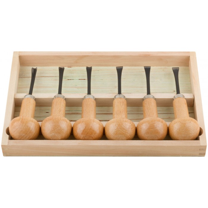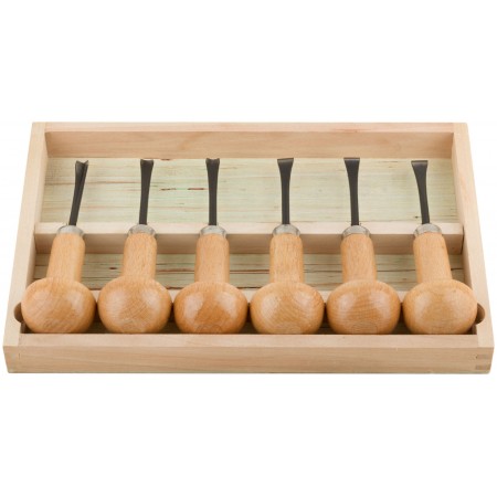 Для выполнения точных и художественно-оформительских работ по бумаге, картону, древесине мягких и твердых пород, пластику. В наборе: косой резец 9 мм, прямой резец 10 мм, полукруглый резец 8,5 мм, V-образный резец 7 мм, изогнутый полукруглый резец 8 мм, изогнутный прямой резец 11 мм. Материал: лезвия из термообработанной хром-ванадиевой стали, деревянные ручки. Упаковка: деревянный кейс в блистере.
