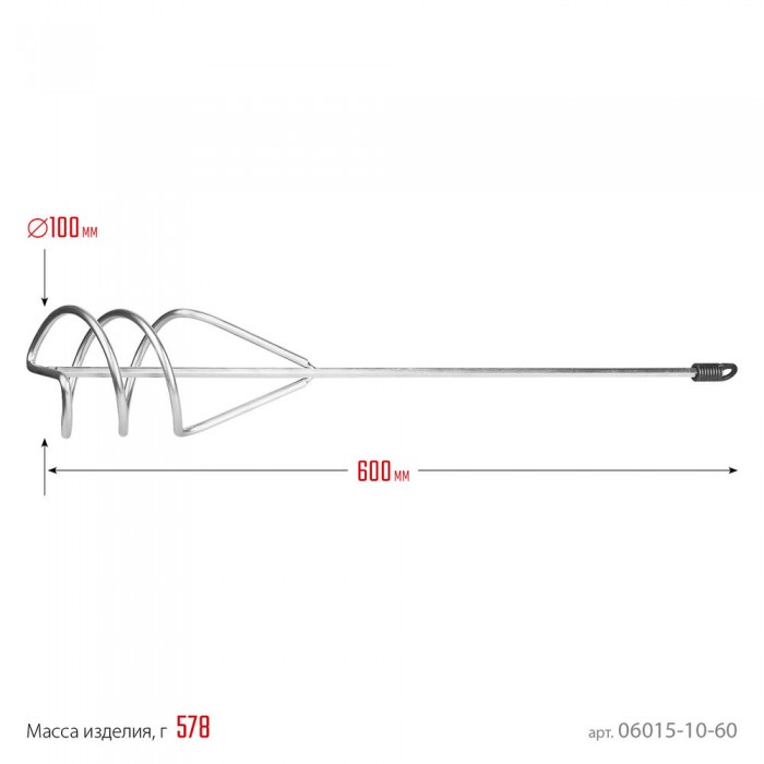 Миксер для песчано-гипсовых смесей 100 х 600 мм, шестигранный хвостовик, оцинкованный STAYER 06015-10-60