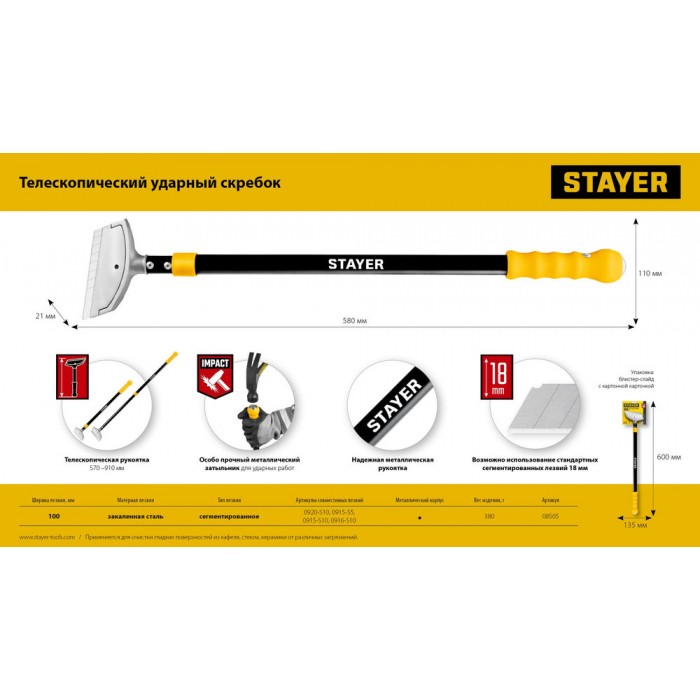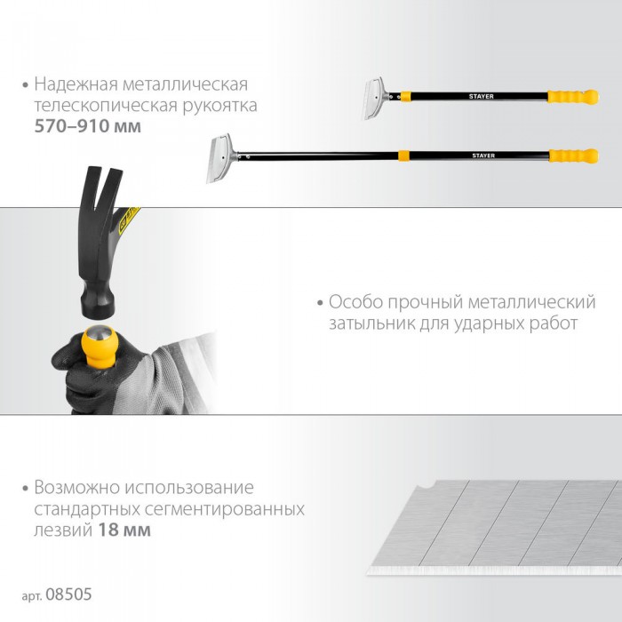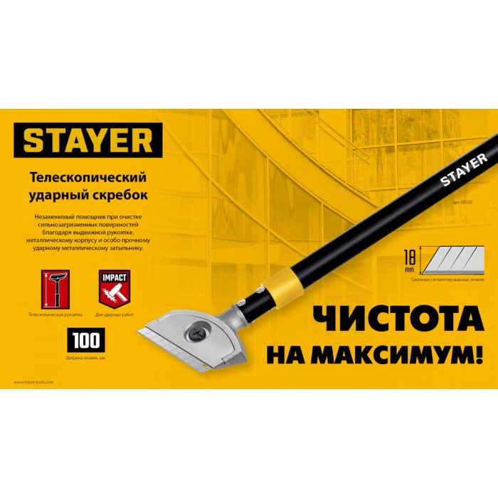 Скребок ударный телескопический 100 мм, длина 570 - 910 мм STAYER 08505