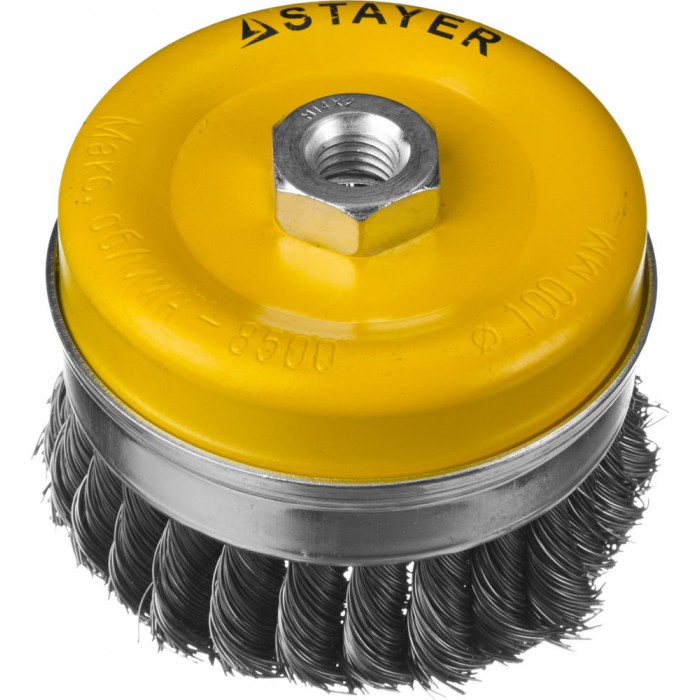 Щетка-крацовка чашечная для УШМ 100 мм, жгутированная стальная проволока 0.5 мм Professional STAYER 35137-100