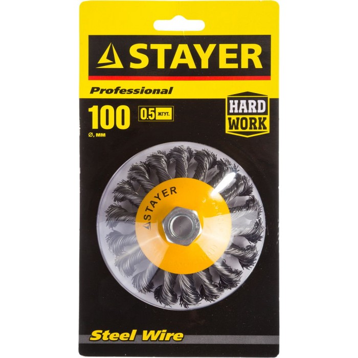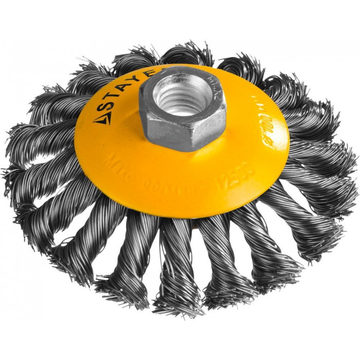 Щетка-крацовка коническая для УШМ 100 мм, жгутированная стальная проволока 0.5 мм Professional STAYER 35135-100