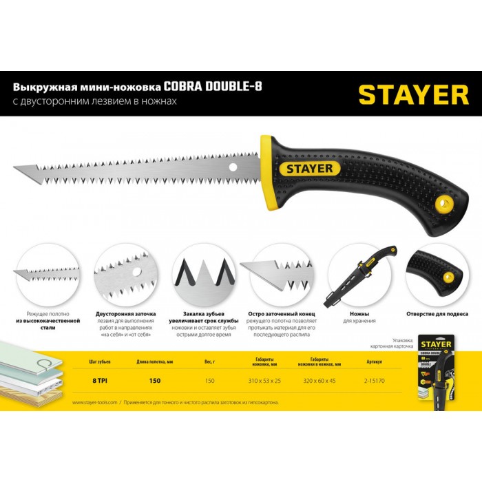 Ножовка мини выкружная по гипсокартону 150 мм Professional STAYER 2-15170_z01