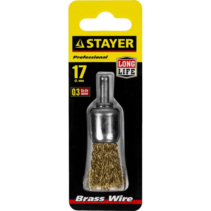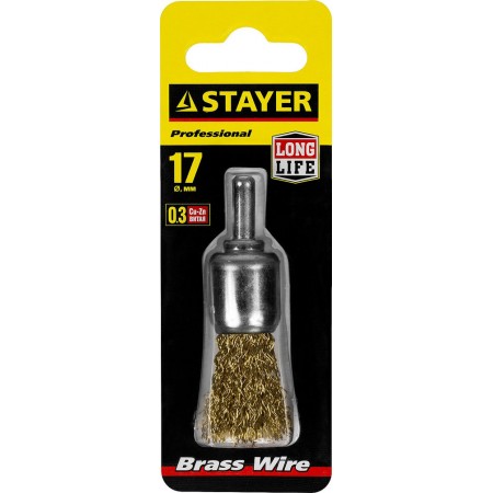Щетка кистевая для дрели 17 мм, витая стальная латунированная проволока 0.3 мм STAYER 35113-17