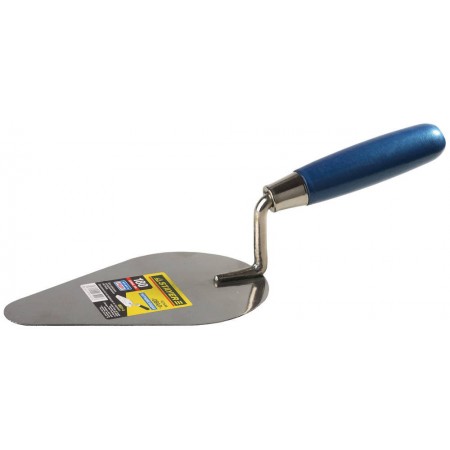 кельма используется для нанесения строительных растворов, нержавеющее стальное полотно обеспечивает прочность конструкции, а двухкомпонентная ручка удобство в работе