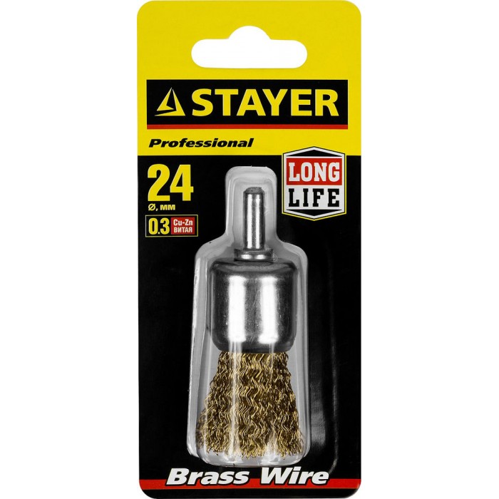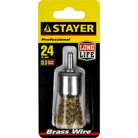 Щетка кистевая для дрели 24 мм, витая стальная латунированная проволока 0.3 мм STAYER 35113-24