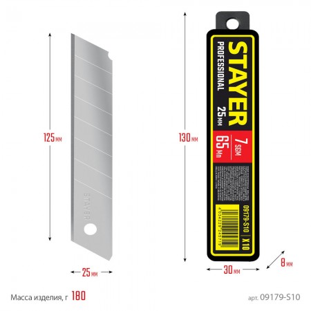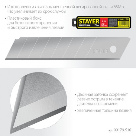 Лезвия сегментированные 25 мм, 10 шт STAYER 09179-S10