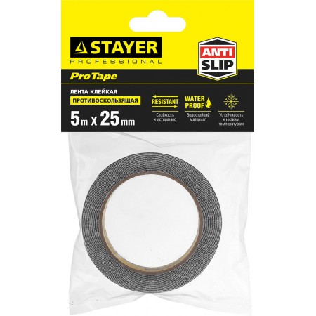 Лента клейкая противоскользящая 25 мм, 5 м, черная STAYER Professional 12270-25-05