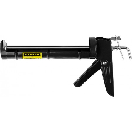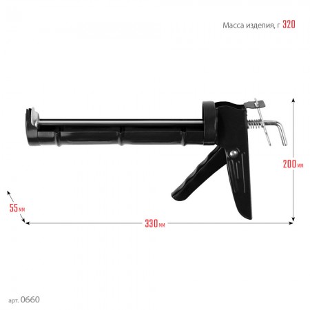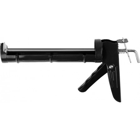 Пистолет для герметиков подходит для работы с картриджами объемом 310 мл, имеет полуоткрытый крашенный стальной корпус, зубчатый шток из оцинкованной стали способствуют равномерной подачи клея либо герметика. Данная спецификация обеспечивает прочность и надежность конструкции пистолета при использовании.
