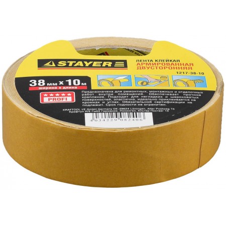 Лента клейкая двухсторонняя 38 мм, 10 м, на тканевой основе STAYER Professional 1217-38-10