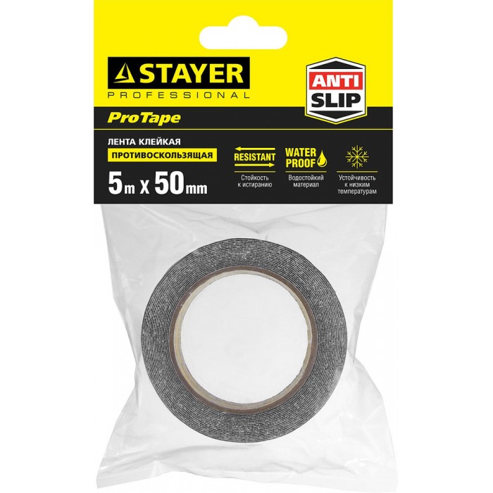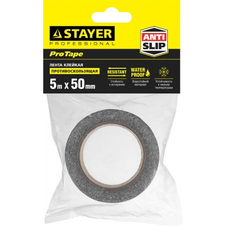 Обеспечивает прекрасную защиту от скольжения на различных типах поверхностей. Обладает высокой стойкостью к истиранию и влагоустойчивостью. Свойства клеевого слоя ленты, основу которого составляют акриловые соединения, позволяют использовать её при низких температурах и обеспечивают высокую клейкость.