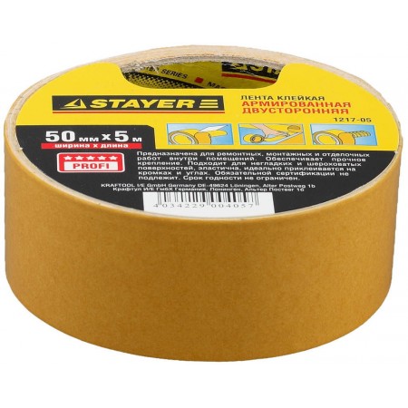 Лента клейкая двухсторонняя 50 мм, 5 м, на тканевой основе STAYER Professional 1217-05