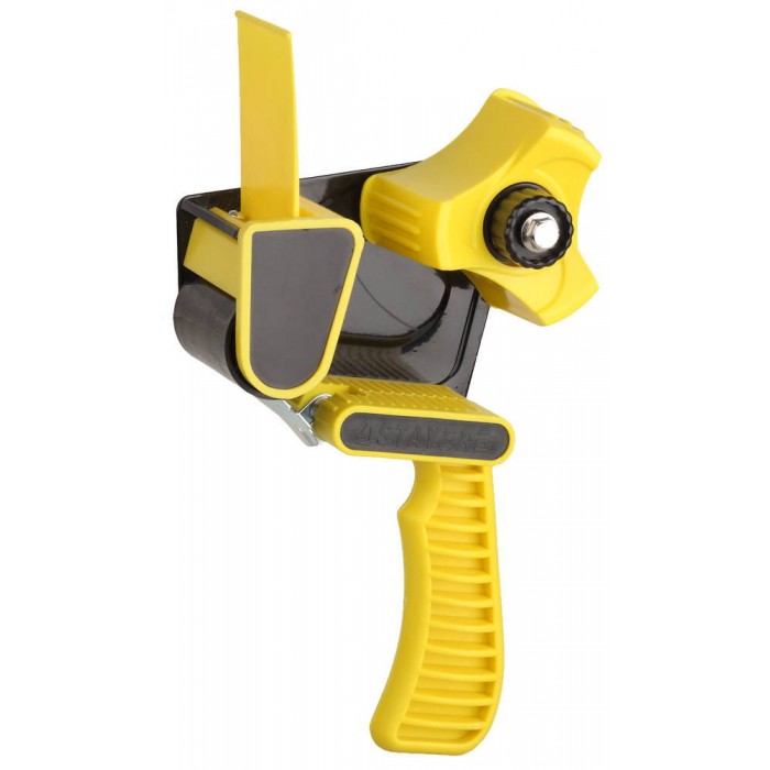Обеспечивает удобство и комфорт при работе с клеящими лентами, облегчает и ускоряет работу. Снабжен металлическим лезвием для обрезки ленты, имеет удобную рукоятку и пластину для прижима отрезанной ленты. Оснащен металлическим каркасом, обеспечивающим высокую прочность изделия и длительный срок службы. Механический тормоз позволяет регулировать натяжение ленты.