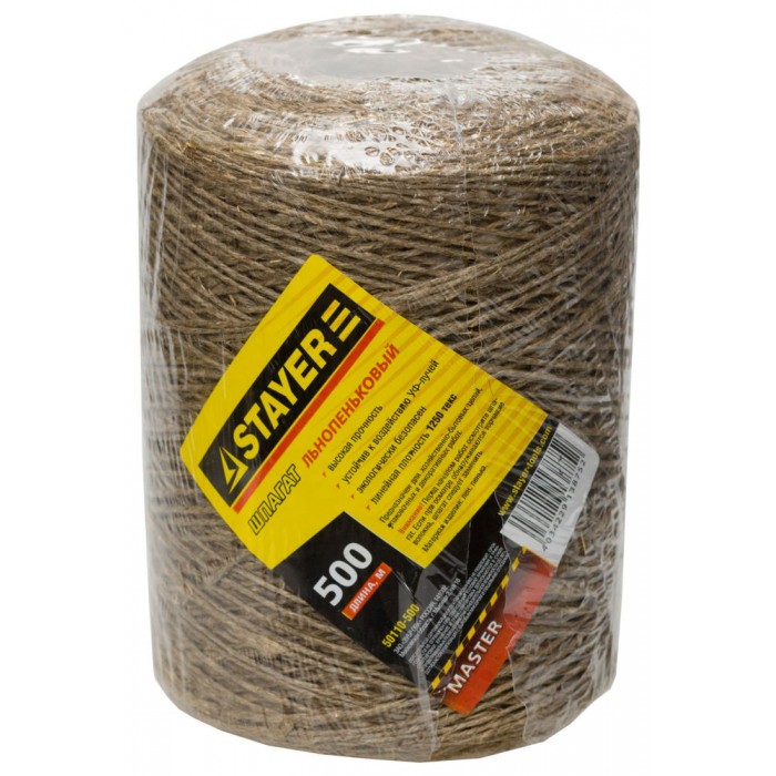 Шпагат льнопеньковый 500 м, d 1.4 мм, 1250 текс, 13.5 кгс STAYER 50110-500