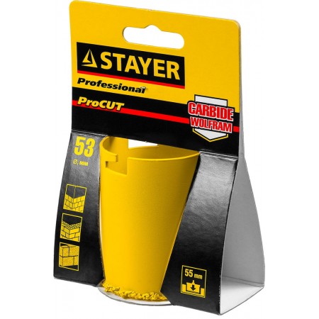 Коронка кольцевая 53 мм, L 55 мм, карбид вольфрама STAYER Professional 33345-53
