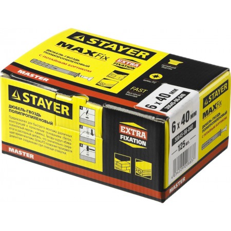 Дюбель-гвоздь 6 х 40 мм, потайной бортик, 125 шт STAYER 30645-06-040