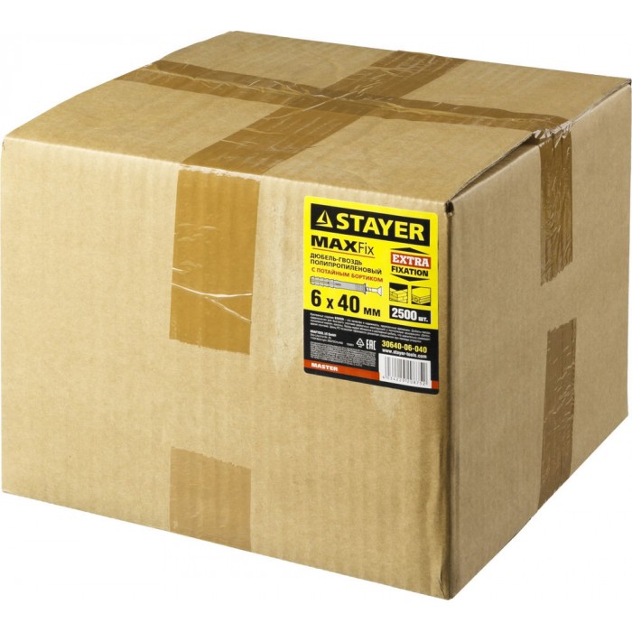 Дюбель-гвоздь 6 х 40 мм, потайной бортик, 2500 шт STAYER 30640-06-040