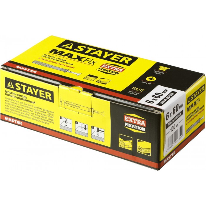 Дюбель-гвоздь 6 х 60 мм, потайной бортик, 100 шт STAYER 30645-06-060