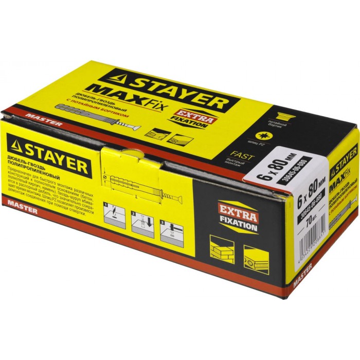 Дюбель-гвоздь 6 х 80 мм, потайной бортик, 70 шт STAYER 30645-06-080
