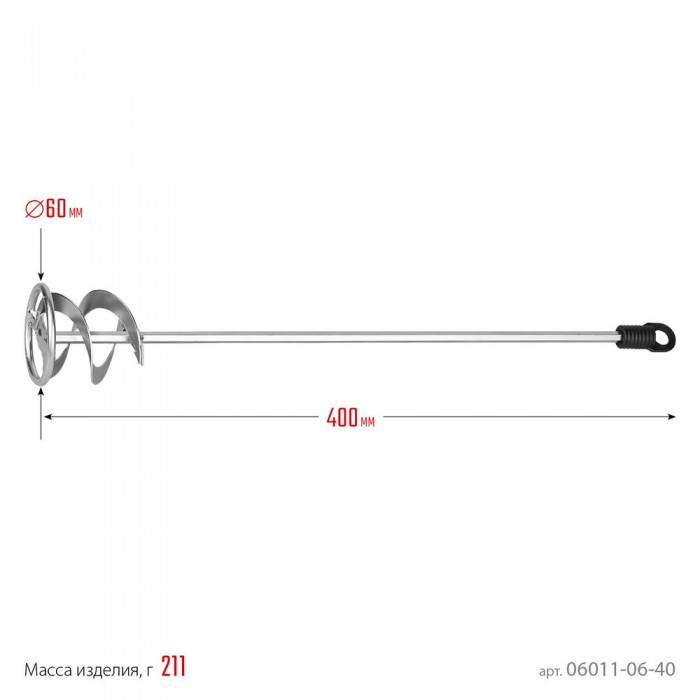 Миксер для красок металлический 60 х 400 мм, шестигранный хвостовик, оцинкованный STAYER 06011-06-40