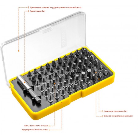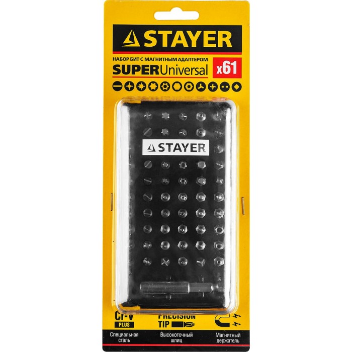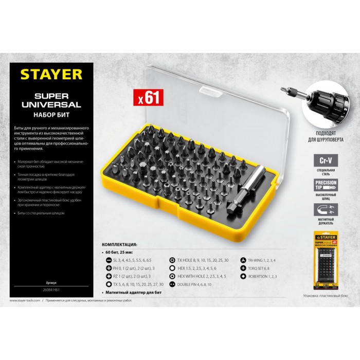 Набор бит 61 шт, с магнитным адаптером STAYER 26084-H61
