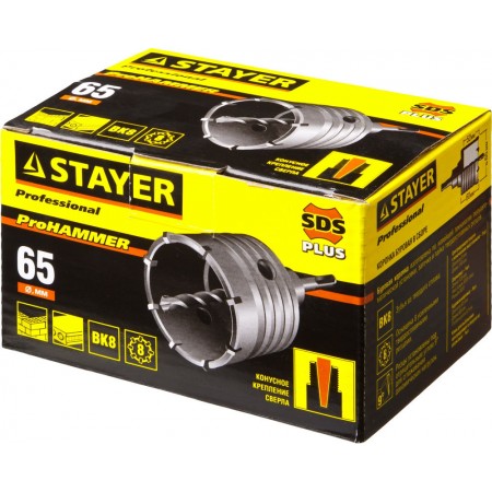 Коронки по бетону STAYER серии PROFESSIONAL - надежный и проверенный инструмент высокого качества. Применяются для сверления бетона, кирпича, природного и искусственного камня, а также плотных известняков.