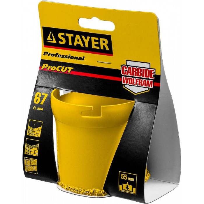 Коронка кольцевая 67 мм, L 55 мм, карбид вольфрама STAYER Professional 33345-67