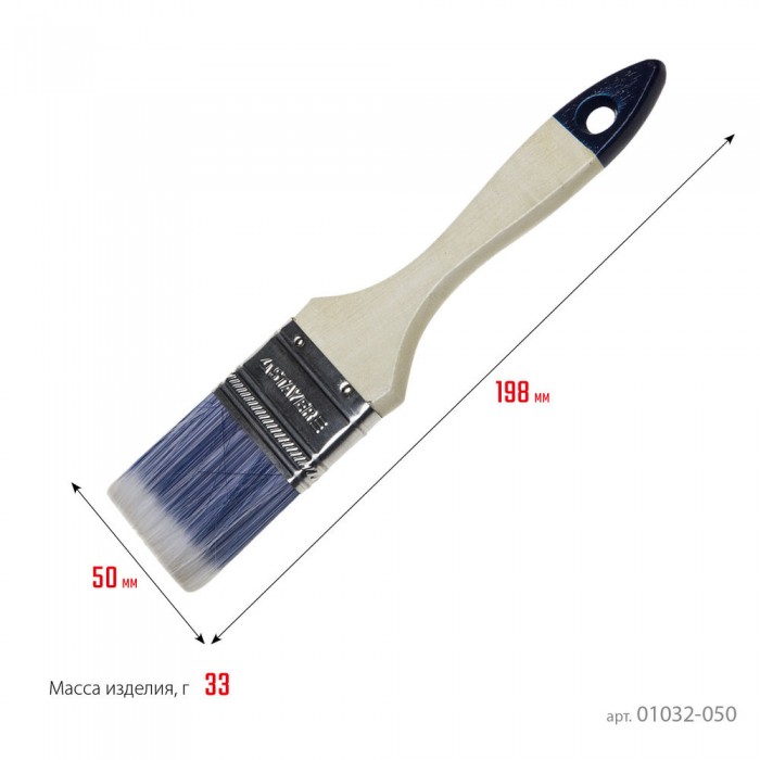 Кисть плоская AQUA, 50 мм, 2", искусственная щетина, деревянная ручка, для воднодисперсионных и акриловых ЛКМ STAYER 01032-050