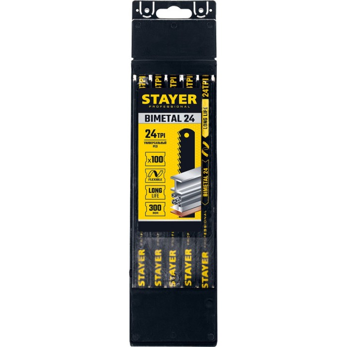 Биметаллическое полотно STAYER Bimetal-24 серии Professional - это высоколегированная быстрорежущая сталь HSS на прочной и гибкой основе из рессорно-пружинной стали