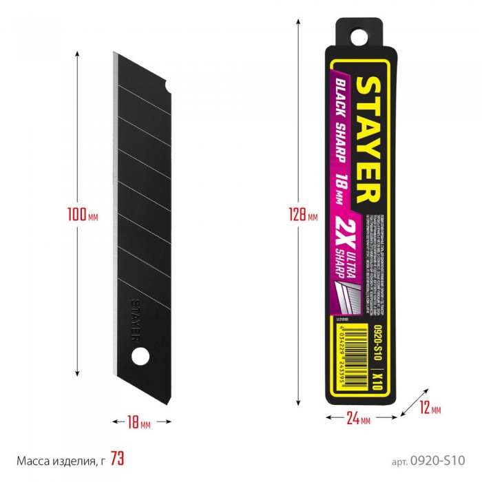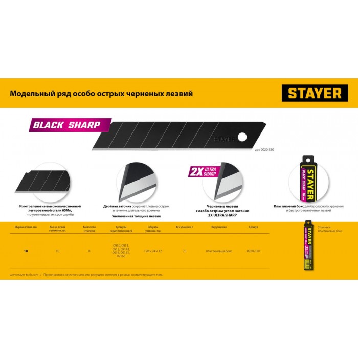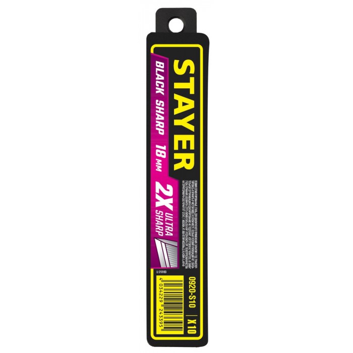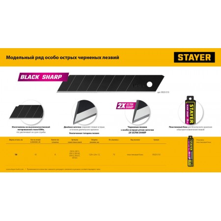 Лезвия сегментированные черные особоострые BLACK SHARP, 18 мм, 10 шт STAYER 0920-S10