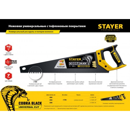 Ножовка универсальная Cobra Black, 450 мм STAYER Professional 2-15081-45_z01