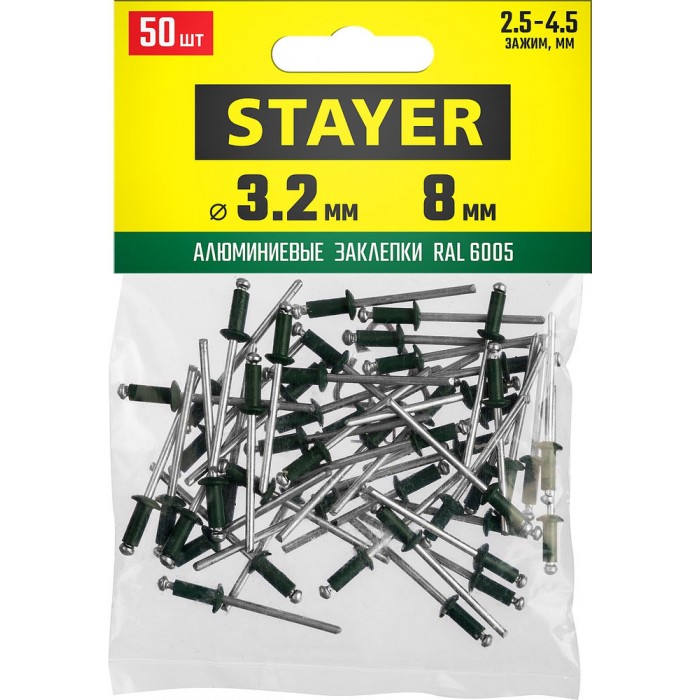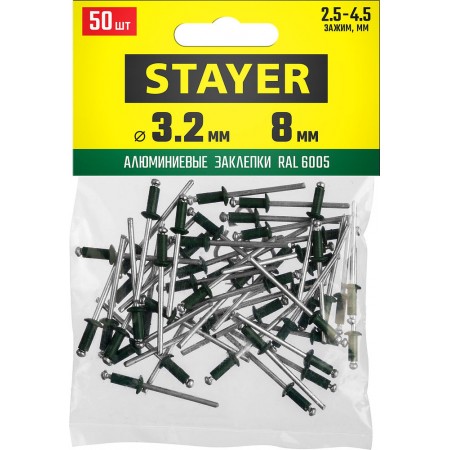 Заклепки алюминиевые Color-FIX, 3.2 х 8 мм, зеленый насыщенный, 50 шт STAYER Professional 3125-32-6005