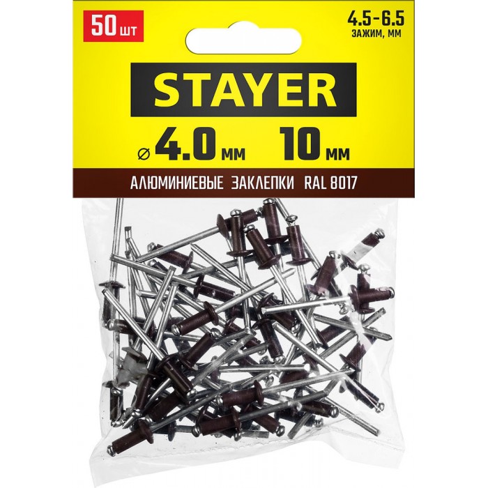 Заклепки алюминиевые Color-FIX, 4.0 х 10 мм, шоколадно-коричневый, 50 шт STAYER Professional 3125-40-8017