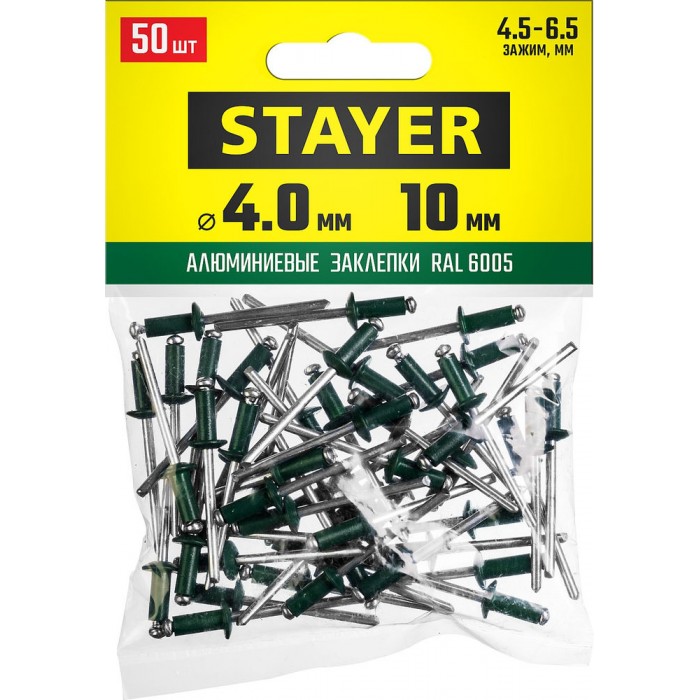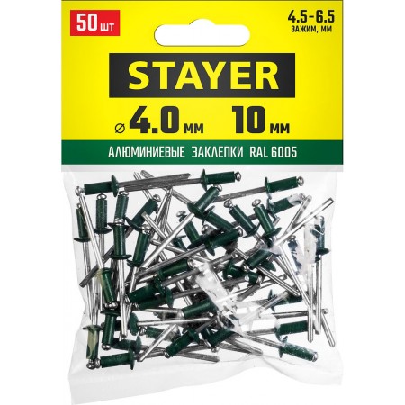 Заклепки алюминиевые Color-FIX, 4.0 х 10 мм, зеленый насыщенный, 50 шт STAYER Professional 3125-40-6005