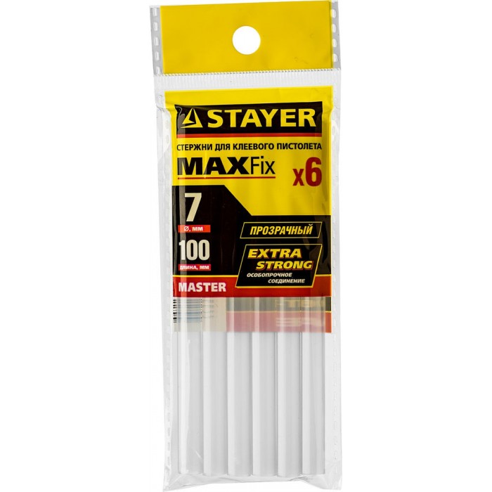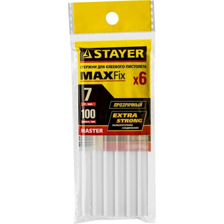 Стержни клеевые универсальные Cristal, 7 х 100 мм, 6 шт, прозрачные STAYER Professional 2-06817-T-S06