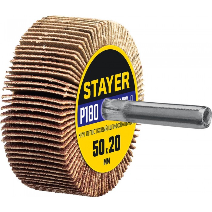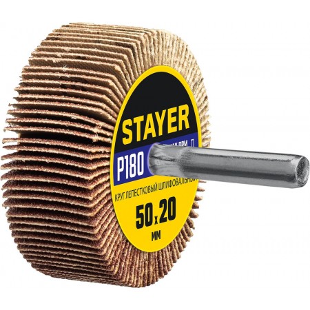 Круг шлифовальный лепестковый d 50 x 20 мм, P180, на шпильке d 6 мм STAYER 36607-180