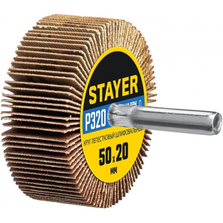 Круг шлифовальный лепестковый d 50 x 20 мм, P320, на шпильке d 6 мм STAYER 36607-320