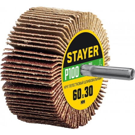 Круг шлифовальный лепестковый d 60 x 30 мм, P100, на шпильке d 6 мм STAYER 36608-100