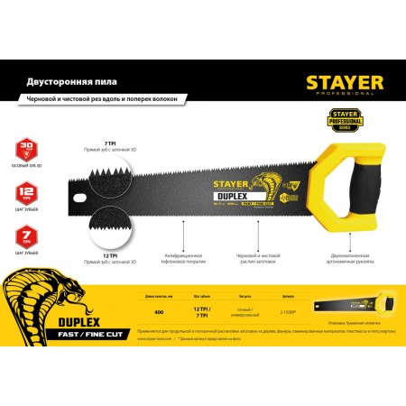 Ножовка двусторонняя Duplex, 400 мм STAYER 2-15089