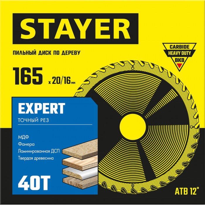 Диск пильный по дереву Expert, 165 x 20/16 мм, 40T, точный рез STAYER 3682-165-20-40_z01